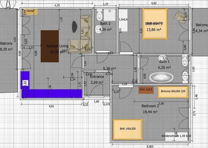 מקום שהייה כולל חדרים עם מרפסת, ספה ומכשיר להכנת קפה/תה וכמו כן גם מטבח עם מיקרוגל, קומקום חשמלי ומקרר. הדירה מורכבת מ-2 חדרי שינה ו-2 חדרי אמבטיה המצוידים בבידה, שירותים נפרדים ואמבטיה.